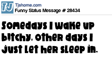 X is somedays I wake up b!tchy, other days I just let her sleep in.