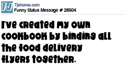 X I've created my own cookbook by binding all the food delivery flyers together.