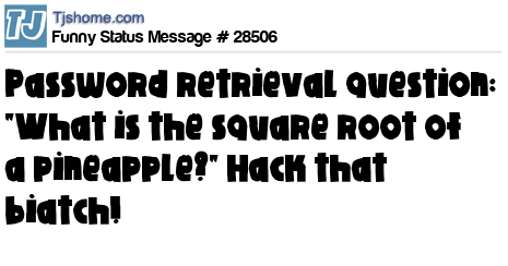 X Password retrieval question: "What is the square root of a pineapple?" Hack that biatch!