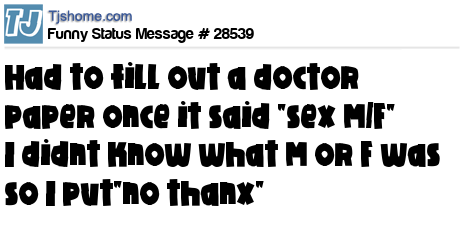X had to fill out a doctor paper once it said "sex M/F" I didnt know what M or F was so I put"no thanx"