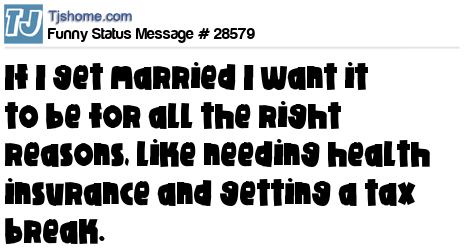 X If I get married I want it to be for all the right reasons, like needing health insurance and getting a tax break.