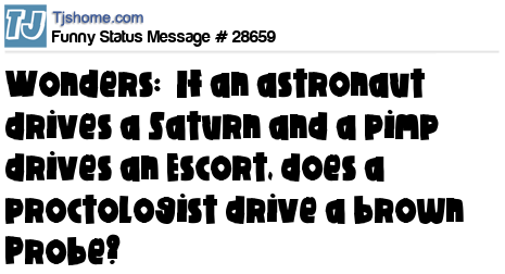 X Wonders: If an astronaut drives a Saturn and a pimp drives an Escort, does a proctologist drive a brown Probe?