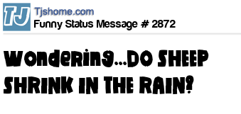 - # 178968 Me: I need to ask you a serious question. GF: OK! First, let me get my mother, sister, BFF and college roommate on speakerphone!! Me: OK, why does a wool sweater shrink when you wash it but sheep don't shrink when it rains??