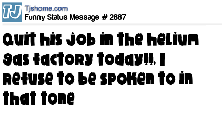 X has quit his job in the helium gas factory today!!, I refuse to be spoken to in that tone