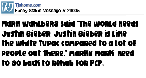 X mark wahlberg said "The world needs Justin Bieber, Justin Bieber is like the white Tupac compared to a lot of people out there." marky mark need to go back to rehab for PCP.
