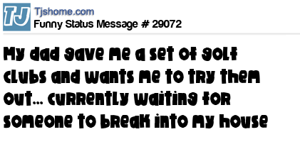- # 168053 My Dad gave me a set of golf clubs. Hope someone tries to break into my house pretty soon so I can try them out.