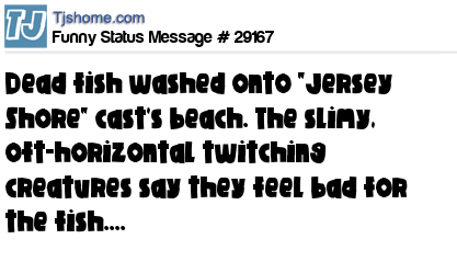 X Dead fish washed onto "Jersey Shore" cast's beach. The slimy, oft-horizontal twitching creatures say they feel bad for the fish....