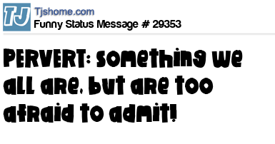 - # 65704 says ok I ll admit It, I am a pervert . Now stop going on about it and grab some whip cream, some feathers, handcuffs, a vibrator, blindfold, a whip and follow me into the kitchen.