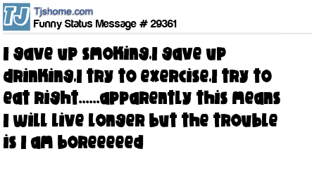 X I gave up smoking,I gave up drinking,I try to exercise,I try to eat right......apparently this means I will live longer but the trouble is I am boreeeeed