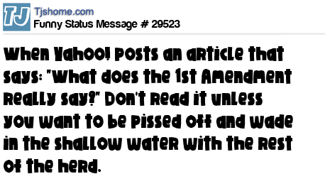 X When Yahoo! posts an article that says: "What does the 1st Amendment really say?" Don't read it unless you want to be pissed off and wade in the shallow water with the rest of the herd.