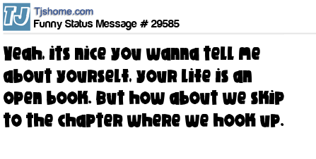 X says Yeah, its nice you wanna tell me about yourself, your life is an open book. But how about we skip to the chapter where we hook up.