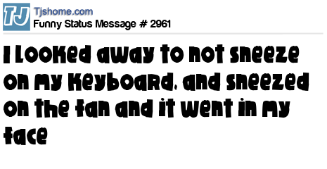 X is I looked away to not sneeze on my keyboard, and sneezed on the fan and it went in my face