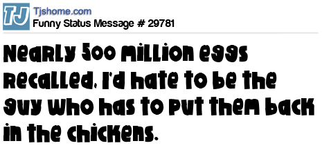 X says nearly 500 million eggs recalled, I'd hate to be the guy who has to put them back in the chickens.