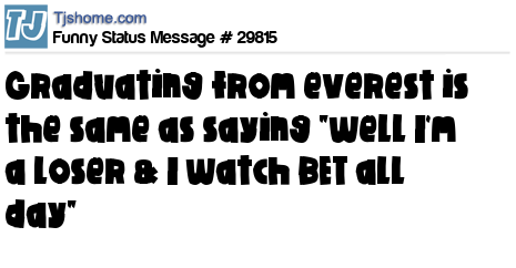 X is graduating from everest is the same as saying "well I'm a loser & I watch BET all day"