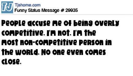 X People accuse me of being overly competitive. I'm not. I'm the most non-competitive person in the world. No one even comes close.