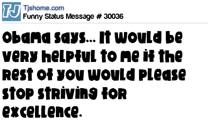 X Obama says... It would be very helpful to me if the rest of you would please stop striving for excellence.