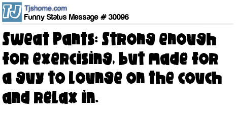 - # 162450 Sweat pants are only ok for 2 reasons. Thanksgiving and strip clubs