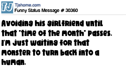 X is Avoiding his girlfriend until that "time of the month" passes. I'm just waiting for that monster to turn back into a human.