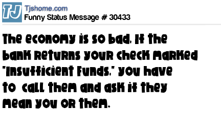 X The economy is so bad, If the bank returns your check marked "Insufficient Funds," you have to call them and ask if they mean you or them.