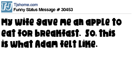 X My wife gave me an apple to eat for breakfast. So, this is what Adam felt like.