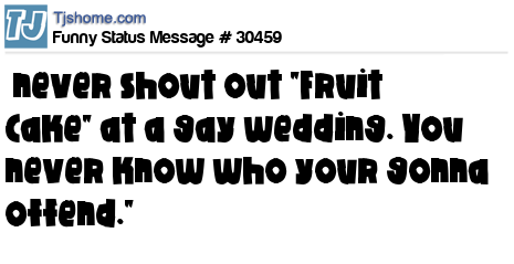 X is never shout out "Fruit Cake" at a gay wedding. You never know who your gonna offend."