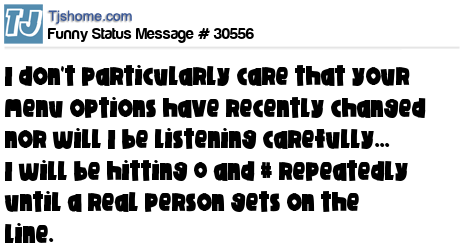 X I don't particularly care that your menu options have recently changed nor will I be listening carefully... I will be hitting 0 and # repeatedly until a real person gets on the line.