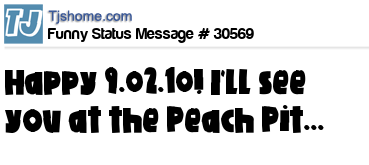 X says Happy 9.02.10! I'll see you at the Peach Pit...