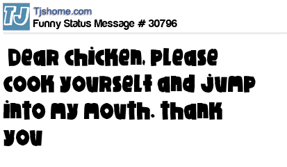X Dear chicken, please cook yourself and jump into my mouth. thank you