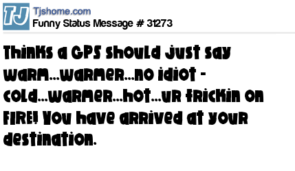 X is thinks a GPS should just say warm...warmer...no idiot - cold...warmer...hot...ur frickin on FIRE! You have arrived at your destination.