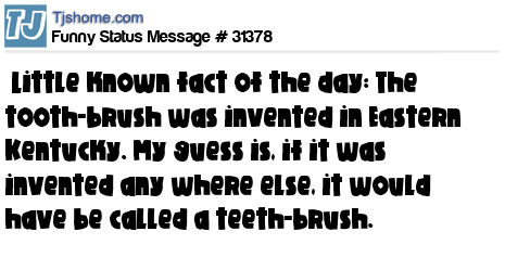 X Little known fact of the day: The tooth-brush was invented in Eastern Kentucky. My guess is, if it was invented any where else, it would have be called a teeth-brush.