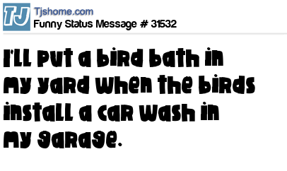 X I'll put a bird bath in my yard when the birds install a car wash in my garage.