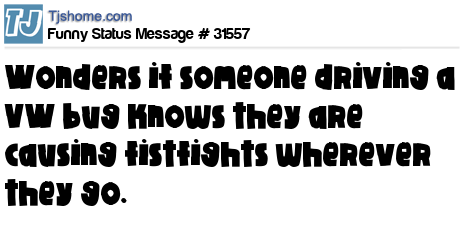 X wonders if someone driving a VW bug knows they are causing fistfights wherever they go.