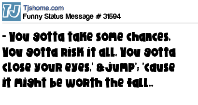 X - You gotta take some chances, You gotta risk it all, You gotta close your eyes,` &jump'; 'cause it might be worth the fall..