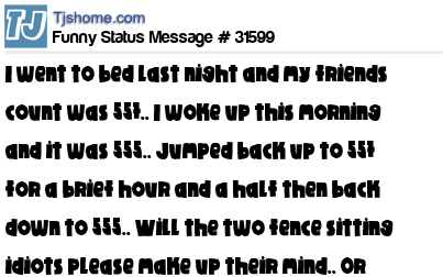 X says I went to bed last night and my friends count was 557.. I woke up this morning and it was 555.. Jumped back up to 557 for a brief hour and a half then back down to 555.. Will the two fence sitting idiots please make up their mind.. Or I'll make it up for