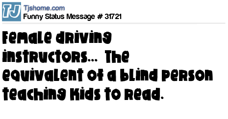 - # 31725 Female driving instructors... The equivalent of a blind person teaching kids to read.