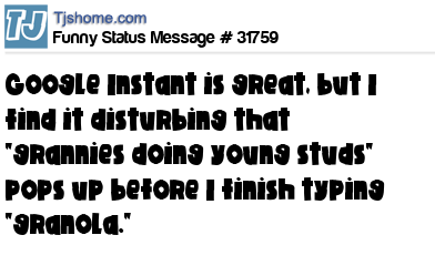 X Google Instant is great, but I find it disturbing that "grannies doing young studs" pops up before I finish typing "granola."
