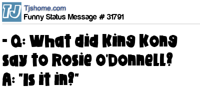 X - Q: What did King Kong say to Rosie O'Donnell? A: "Is it in?"