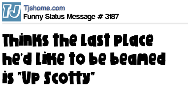 X thinks the last place he'd like to be beamed is "Up Scotty"