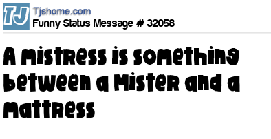 - # 185438 ;) A mistress is someone between a mister and a mattress