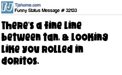- # 36071 There's a fine line between looking tan and looking like you rolled in a bag of Doritos.