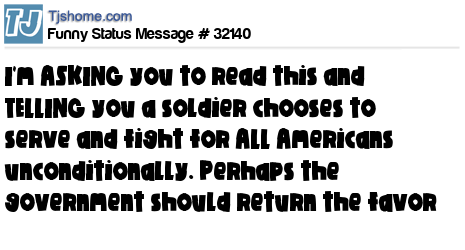 X I'm ASKING you to read this and TELLING you a soldier chooses to serve and fight for ALL Americans unconditionally. Perhaps the government should return the favor