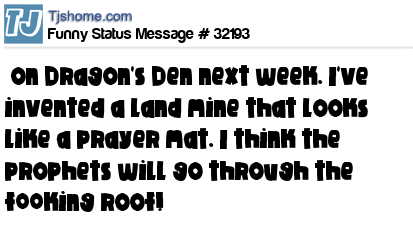 X is  on Dragon's Den next week. I've invented a land mine that looks like a prayer mat. I think the prophets will go through the f00king roof!