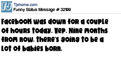 X is Facebook was down for a couple of hours today. Yep. Nine months from now, there's going to be a lot of babies born.