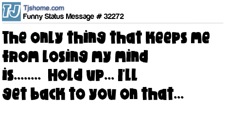 X The only thing that keeps me from losing my mind is........ Hold up... I'll get back to you on that...