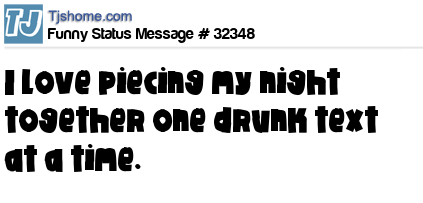 - # 26518 got so drunk last night that he apprantly had sent a text to his friend saying "dude, partys great, but were runnin out of alcohol, so email me a pack of captain morgans, then head over."
