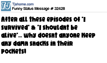 X is After all these episodes of "I survived" & "I shouldnt be alive"... why doesnt anyone keep any damn snacks in their pockets!
