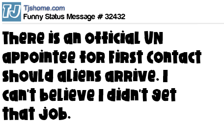 X There is an official UN appointee for First Contact should aliens arrive. I can't believe I didn't get that job.