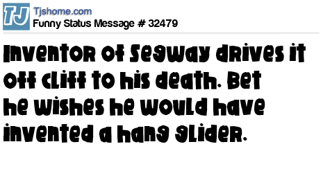 X  Inventor of Segway drives it off cliff to his death. Bet he wishes he would have invented a hang glider.