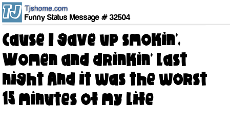 X is Cause I gave up smokin', Women and drinkin' last night And it was the worst 15 minutes of my life