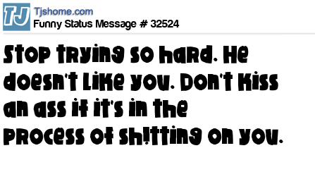 - # 27098 Stop trying so hard. He doesn't like you, don't kiss an a$$ if it's in the process of $hitting on you